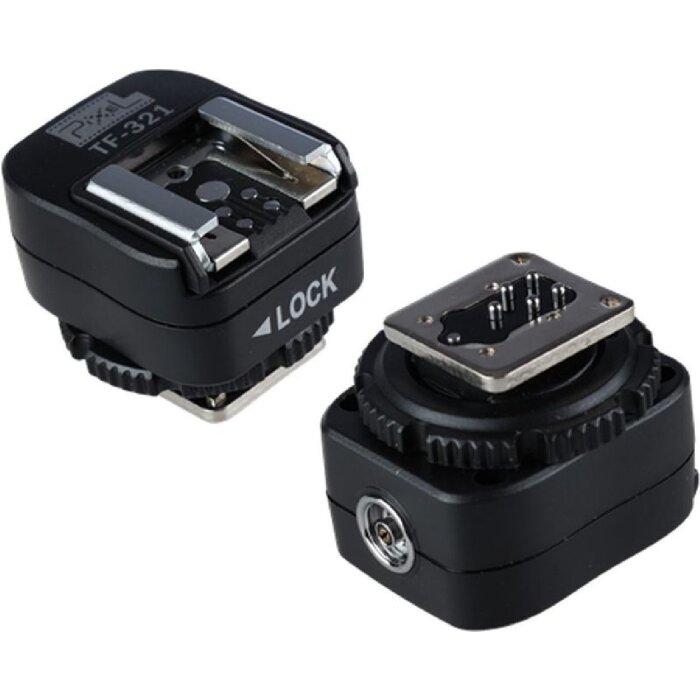 Pixel E-TTL Hotshoe Adapter TF-321 dla Canon, kompatybilny ze wszystkimi aparatami Canon, obsługuje E-TTL II, solidna konstrukcja, łatwy montaż, niezawodna wydajność, idealny do użytku w studio i w plenerze.