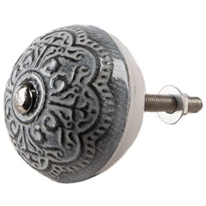 Gałka do drzwi w stylu vintage, Clayre & Eef 65303, Ø 4 cm, szara, ceramiczna, zestaw 4 sztuk