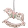 Clayre & Eef 6PR4224 Dekoracyjny wiszący bujany koń różowy 8x2x7 cm Boże Narodzenie