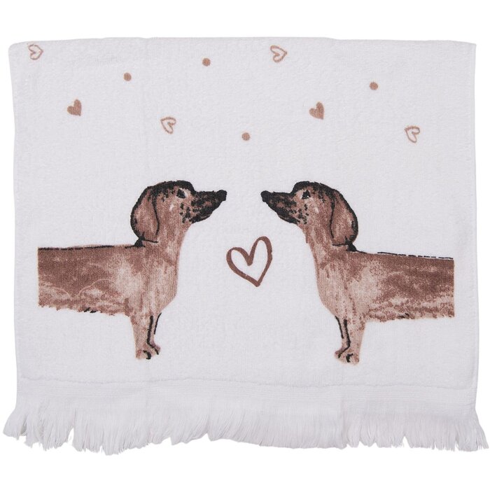Clayre & Eef CTDHL2 Ręcznik dla gości pies 40x66 cm biały - brązowy