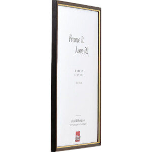 Efektowna rama drewniana, widoczna struktura drewna i gładka powierzchnia, ze złotą krawędzią, wąski profil profilowania