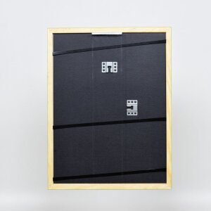 Rama z litego drewna sosnowego, średniej szerokości lekko nachylony profil listew, gładka powierzchnia o wysokim połysku i widoczna struktura drewna