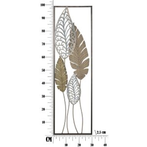 Dekoracja ścienna liście wykonana z żelaza i MDF, 30,5x2,5x99,5 cm, złoto-srebrna, artystycznie zaprojektowane liście ze strukturą 3D, elegancki obiekt ścienny do stylowych pomieszczeń mieszkalnych i roboczych Mauro Ferretti