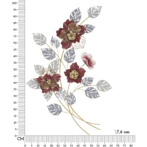 Panel ścienny 68,6x7,6x98,4 cm, żelazny, ciemnoczerwony, złoty i srebrny, kwiatowy wzór 3D z kwiatami i liśćmi, elegancki i romantyczny do stylowego wystroju ściany