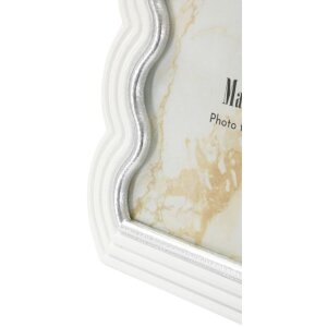 Ramka na zdjęcie 15x20 cm, poliresyna w kolorze białym z srebrnym akcentem, falisty wzór, nowoczesna i elegancka do stylowych wnętrz i osobistych wspomnień