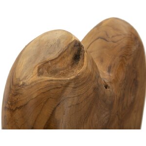 Ręcznie wykonana rzeźba z drewna tekowego pochodzącego z recyklingu, 25x12x45 cm, brązowa, w kształcie serca na cokole, rustykalny, unikalny element z emocjonalnym projektem Mauro Ferretti.