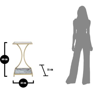 Stolik boczny 40x35x60 cm, żelazo, MDF, szkło, kolor złoty z marmurkową wielokolorową powierzchnią, kwadratowy z zakrzywioną ramą, elegancki, funkcjonalny, dekoracyjny
