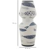 Wazon ceramiczny Ø?14x34?cm, biało-niebieski, podwójnie stożkowy kształt z motywami ryb morskich, idealny jako przedmiot dekoracyjny lub wazon na kwiaty w stylu nadmorskim.