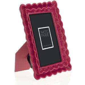 Ramka na zdjęcia z żywicy syntetycznej ZEP Deco, elegancki barokowy design, zaokrąglone krawędzie, kolory: czerwony/zielony, rozmiary: 10x15 cm, 13x18 cm, 15x20 cm, można ustawić i powiesić, błyszczące lakierowane wykończenie, idealna do salonu lub na prezent