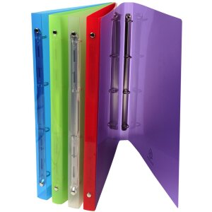 Segregator ringowy z PP 500µ z 4 pierścieniami 15mm, grzbiet 20mm, Crystal, do formatu DIN A4 różne kolory