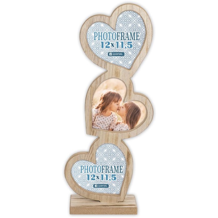 Potrójne serce, 3 zdjęcia 12x11,5 cm, funkcja podstawki, wygląd naturalnego drewna, wymiary: 13x40 cm, Walentynki