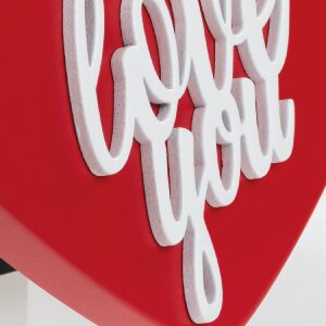 Drewniana ramka na zdjęcia w kształcie serca w kolorze czerwonym, odpowiednia do zdjęć 10x15 cm, wolnostojąca z solidną podstawą, romantyczny design z napisem Love You, idealna na prezent